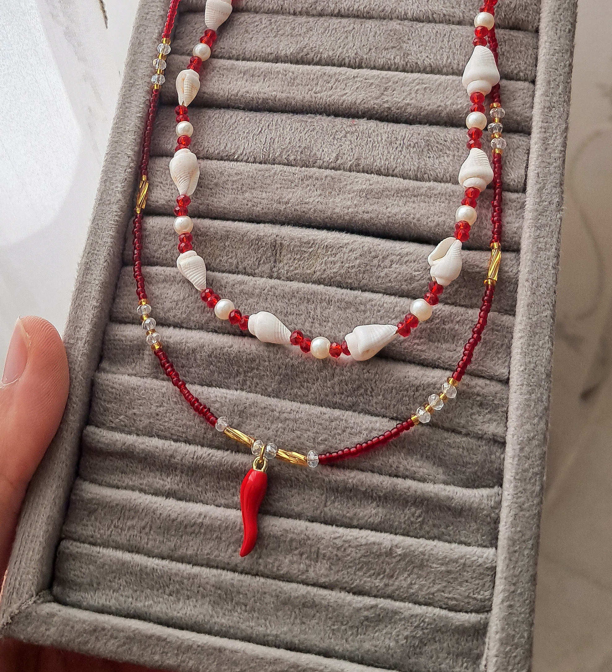گردنبند فلفلی قرمز - گردنبند صدفی