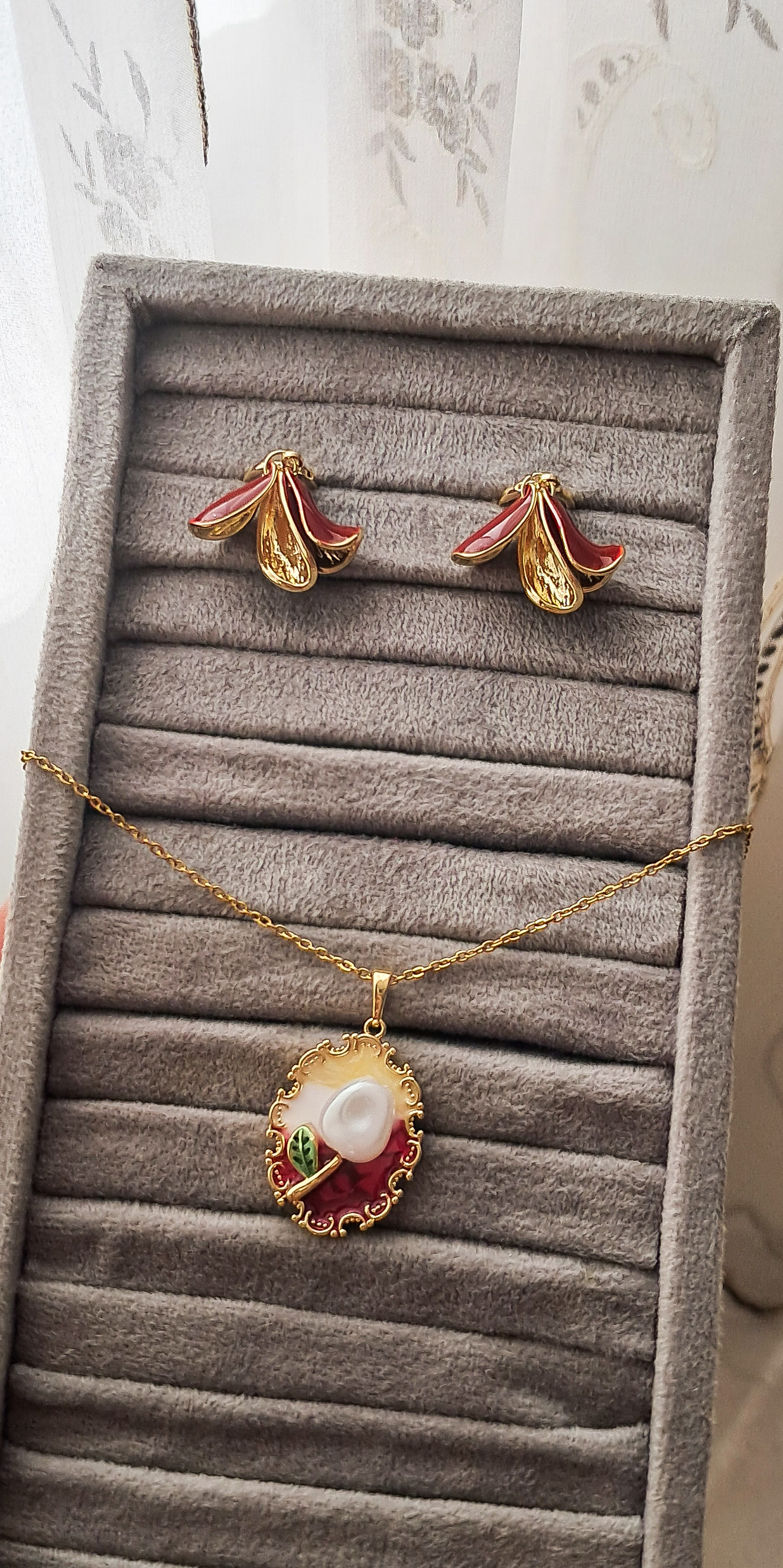 گردنبند میناکاری : جنس استیل_ضد حساسیت_ طول گردنبند 45سانت/ گوشواره آوسز میناکاری : جنس استیل _ ضد حساسیت