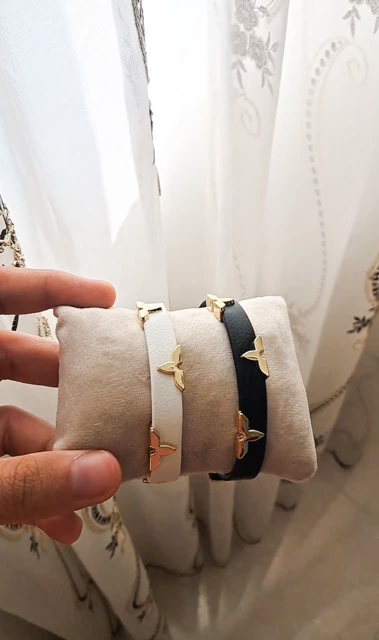 دستبند چرم لویی ویتون در دورنگ مشکی و سفید همراه با تزئین طلایی_قابل استفاده برای تمام مچ ها
