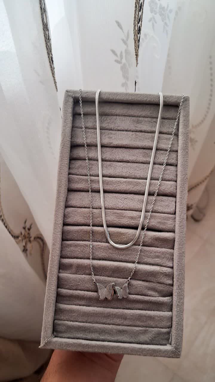 گردنبند دولاین پروانه ای(گردنبند استیل پروانه ای +زنجیر ماری)_ طول گردنبند 45 سانت _ ضد حساسیت_ رنگ ثابت